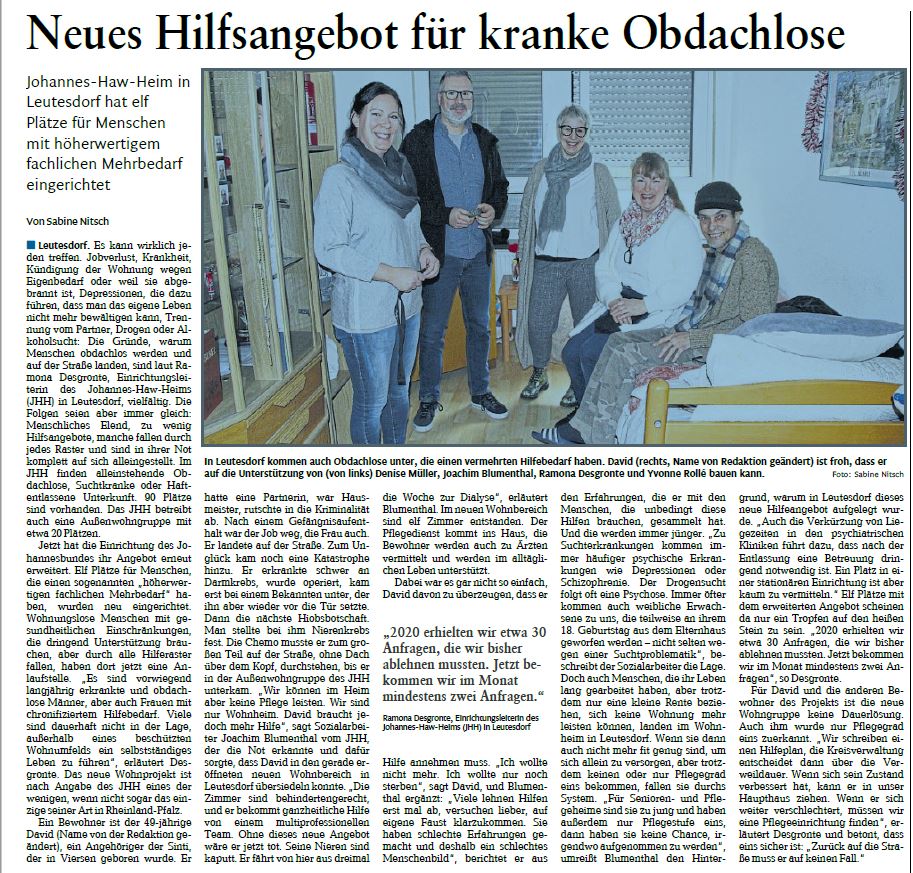 Autor: Sabine Nitsch, Titel: "Neues Hilfsangebot für kranke Obdachlose", Rhein-Zeitung, Ausgabe A, vom 01.02.2023